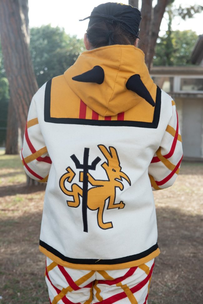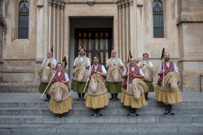 Realització del vestuari dels portadors dels cavallets i complements del cavall: faldó, domàs i banderí. El disseny del cavall i la mèdula ha estat fet per Anna Sínia i l’Alessandro Giotto n’ha fet l’estructura.