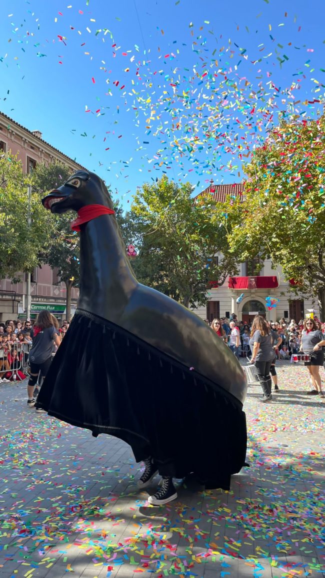 Confecció de la faldilla de protocol, amb disseny de Marc Udina. També s’ha confeccionat la faldilla del correfoc amb uns materials més resistents.